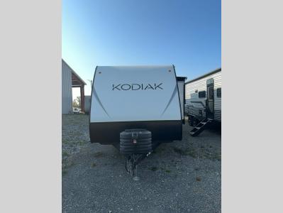 Each Kodiak travel trailer by Dutchmen includes a diamond front plate, easy lube axles, and a power tongue jack for hassle-free towing. The bear cave storage will allow you to bring along all the camp gear, and the power awning with an LED light will create an inviting outdoor space. Head inside to enjoy the designer valances, blackout roller shades, and seamless countertops. There is also HyperDeck flooring that will withstand your many adventures plus a 6' 8" interior height for more head room. A high output furnace and 13.5k BTU A/C will keep you comfortable, and the on-demand tankless water heater will provide instant hot water when you need it!