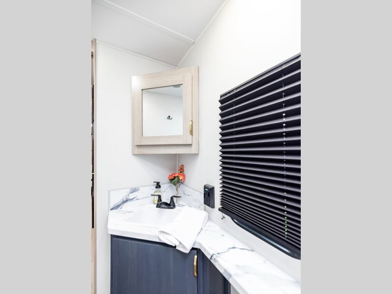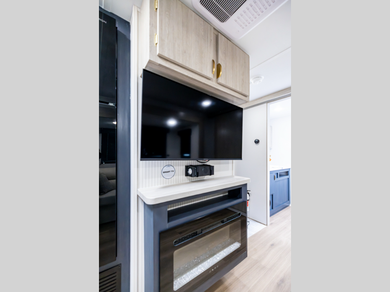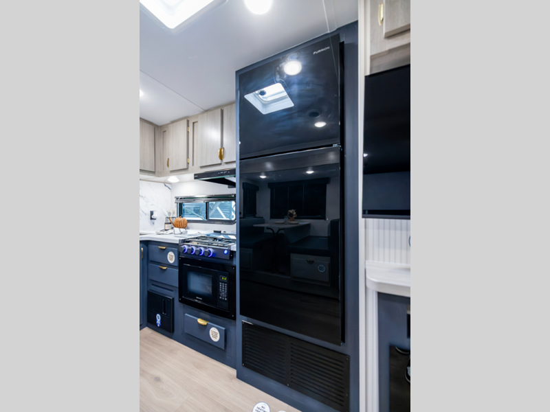 The 81" interior ceiling height throughout provides ample space to move around, while our residential-inspired kitchen and living spaces make you feel right at home. Our tankless on-demand water heater provides endless hot water, while the power awning with adjustable legs offers the perfect outdoor retreat. Plus, with a 7-way plug and chain holder, you'll be ready to hook up and go.