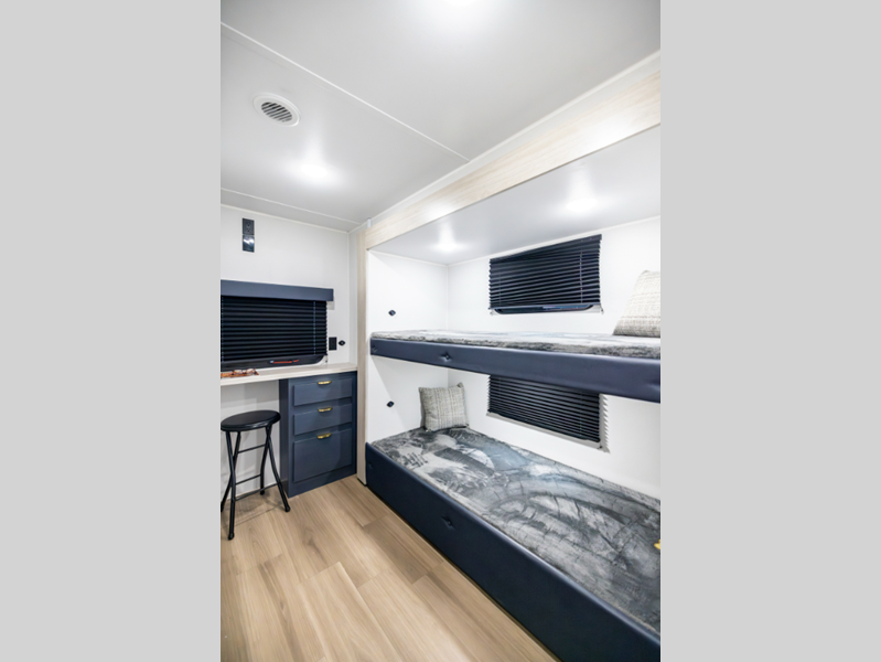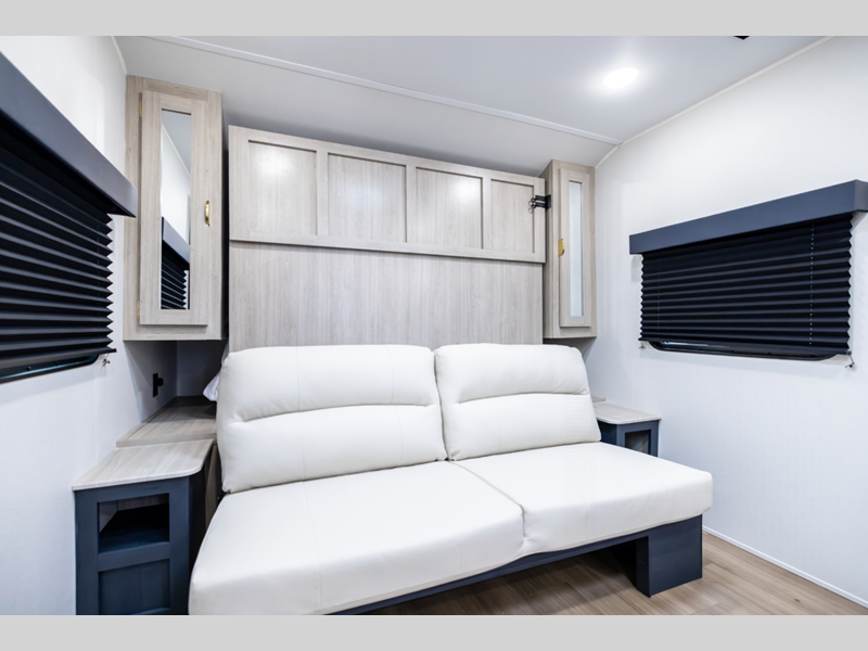 Sleeps 5 Slides 2 Length 28 ft 8 in Ext Width 8 ft Ext Height 10 ft 10 in Int Height 6 ft 9 in Hitch Weight 700 lbs GVWR 7600 lbs Dry Weight 6153 lbs Cargo Capacity 1447 lbs Fresh Water Capacity 40 gals Grey Water Capacity 60 gals Black Water Capacity 30 gals Furnace BTU 35000 btu Number Of Bunks 2 Available Beds Murphy Queen Refrigerator Type 12V Refrigerator Size 10.7 cu ft Cooktop Burners 2 Number of Awnings 1 Water Heater Type On Demand Tankless Awning Info 18' Power w/ Adjustable Legs Axle Count 1 Shower Type Standard Similar Floorplans