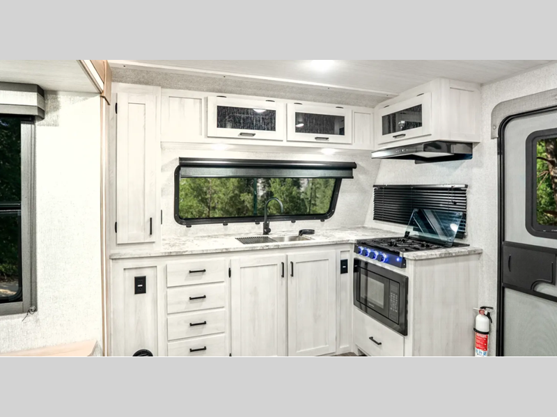 Sleeps 4 Slides 1 Length 24 ft 1 in Ext Width 8 ft Ext Height 11 ft 2 in Hitch Weight 740 lbs GVWR 7740 lbs Dry Weight 5293 lbs Cargo Capacity 2447 lbs Fresh Water Capacity 53 gals Grey Water Capacity 60 gals Black Water Capacity 30 gals Furnace BTU 35000 btu Available Beds Queen Refrigerator Type 12V Residential Inspired Cooktop Burners 2 Number of Awnings 1 Water Heater Type On Demand Tankless AC BTU 15000 btu TV Info LED Smart TV Awning Info 16' Power Axle Count 2 Shower Type Radius Similar Floorplans