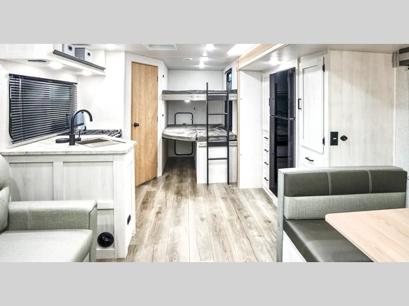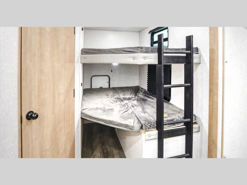 Sleeps 7 Slides 1 Length 30 ft 6 in Ext Width 8 ft Ext Height 11 ft 2 in Hitch Weight 650 lbs GVWR 7650 lbs Dry Weight 6068 lbs Cargo Capacity 1582 lbs Fresh Water Capacity 53 gals Grey Water Capacity 60 gals Black Water Capacity 30 gals Furnace BTU 35000 btu Number Of Bunks 2 Available Beds Queen Refrigerator Type 12V Residential Inspired Cooktop Burners 2 Number of Awnings 1 Water Heater Type On Demand Tankless AC BTU 15000 btu TV Info LED Smart TV Awning Info 21' Power Axle Count 2 Shower Type Standard Similar Floorplans