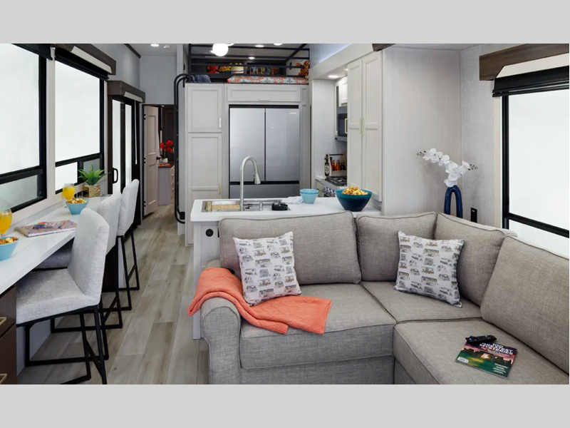 The 'True" gelcoat exterior is the best of the best in exteriors, and Cedar Creek's famous all-aluminum superstructure means you can enjoy your RV for years to come. There is also an 8' 4" wide body frame for added interior space plus a durable AlphaPly TPO roof membrane. Inside, you'll be met with residential features, vinyl flooring coverings, ample storage space for your belongings, and many more comforts.