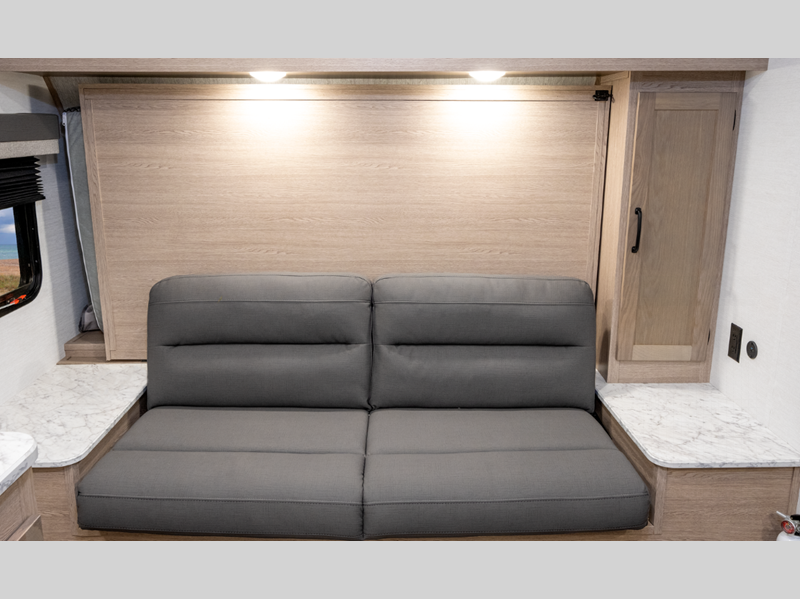 The seamless synthetic vinyl roof and diamond plate lower front provide a durable trailer made to last, and the high-performance vinyl flooring throughout will be easy to keep clean. Each model includes LED interior lights, wood ceiling trim, laminated countertops with vinyl T-molding, and many more interior comforts. You will also appreciate the tankless water heater, the multiple USB ports to keep your electronics charged, and the power awning that will provide shade while you visit outdoors.