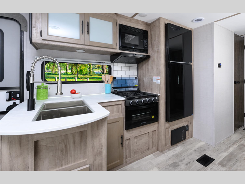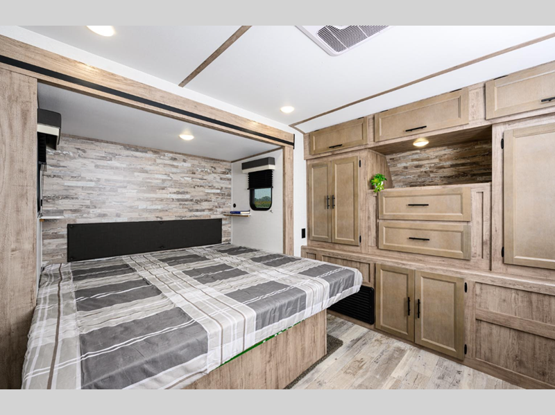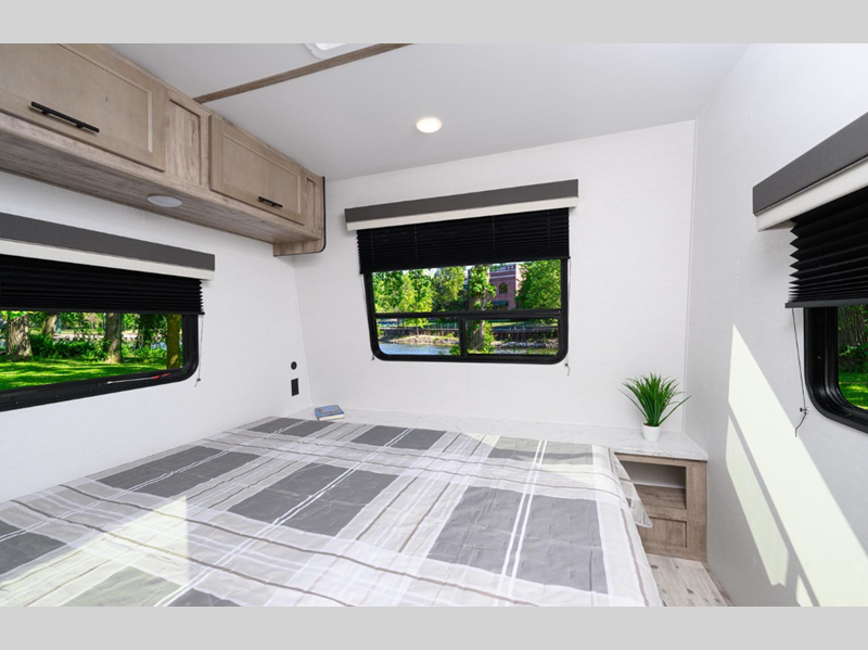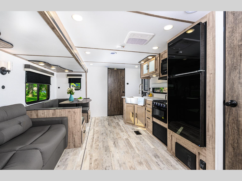 These models are considered to have the ideal combination of value and luxury for those looking to have high-value, low-priced family-oriented camping excursions. The handcrafted cabinetry and extensive storage space throughout will have you feeling right at home where ever you go, and the larger slide windows will bring in more natural lighting. These models feature upgraded graphics, a convenient tankless water heater, upgraded bath and shower faucets, and many more comforts!