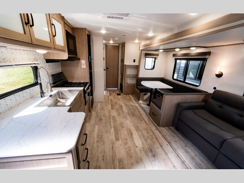 Sleeps 4 Slides 1 Length 30 ft 5 in Ext Width 8 ft Ext Height 11 ft 3 in Int Height 6 ft 8 in Hitch Weight 650 lbs Dry Weight 6290 lbs Cargo Capacity 3160 lbs Fresh Water Capacity 35 gals Grey Water Capacity 67 gals Black Water Capacity 33 gals Furnace BTU 25000 btu Available Beds Queen Refrigerator Type 12V Refrigerator Size 10.7 cu ft Cooktop Burners 3 Number of Awnings 1 LP Tank Capacity 20 lbs Water Heater Type Tankless AC BTU 13500 btu Awning Info Electric with LED Lights Axle Count 2 Number of LP Tanks 2 Shower Type Radius Electrical Service 30 amp Similar Floorplans