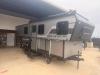 Inside, you'll enjoy your own two burner stove and refrigerator so you're not always cooking on the firepit outside, plus there is dry bath so you don't have to use the camp's facilities. Each model includes durable construction materials, including a metal underbelly, a 3" laminated floor, and a 2" x 5" steel frame. The rubber torsion axles with independent suspension will provide smooth towing, and the outside shower will come in handy when cleaning off your hiking boots.