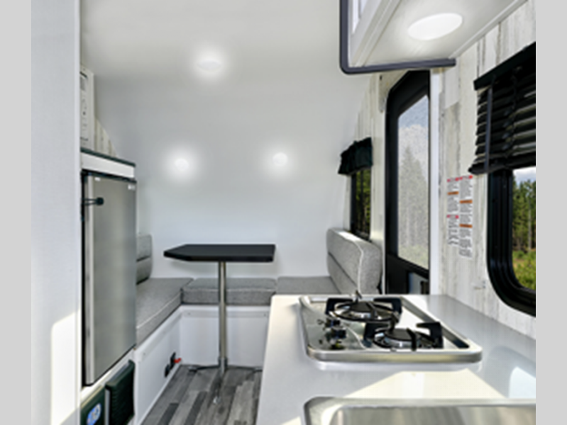 Sleeps 2 Length 16 ft 6 in Ext Width 7 ft 11 in Ext Height 8 ft 1 in Hitch Weight 128 lbs GVWR 2500 lbs Dry Weight 2014 lbs Cargo Capacity 466 lbs Fresh Water Capacity 10 gals Grey Water Capacity 30 gals Black Water Capacity 15 gals Tire Size 175/80R13 Furnace BTU 18000 btu Refrigerator Type 12V Refrigerator Size 3 cu ft Cooktop Burners 2 Water Heater Type On Demand Tankless AC BTU 6000 btu Axle Count 1 Shower Type Wet/Bath Shower Electrical Service 30 amp