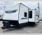 Experience a home away from home in this travel trailer! One of the dual entry doors is a sliding patio door to let in some warm sunshine and provide a large view of your beautiful surroundings. The front private bunkhouse has a set of bunk beds, a TV wardrobe, and a dinette with bunk overhead. The dinette makes a perfect game table for those rainy days. Enjoy your morning coffee sitting in one of the two bar stools at the kitchen counter and enjoy your meals that were prepared with the three burner cooktop at the booth dinette. The bathroom features a neo-angled shower, wardrobe, private toilet area and sink. Get a good night's rest each night on the king bed slide in the rear private bedroom and keep your clothes looking nice with the vanity and drawers. You even have a second entrance/exit door to the unit for easy access in and out!